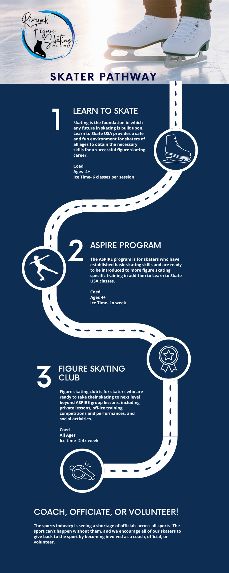 Successful figure skating and hockey programs start with a successful Learn to Skate program. Getting you on the right start and path is our focus!